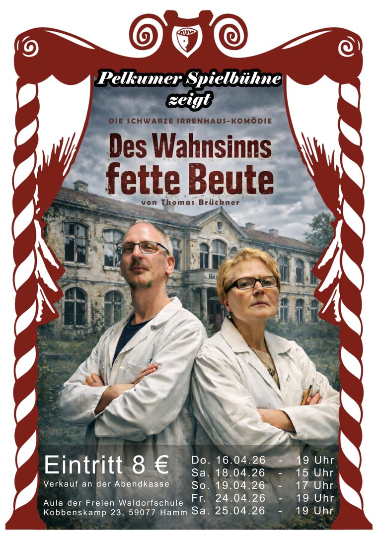 Nicht mehr lange, und die Pelkumer Spielbühne führt ihr neues Stück auf, der Damen Club der Marquis Crossing und sein erster Mordversuch. Diese Krimikomödie verspricht mal wieder viele Lacher und kann an den folgenden Terminen besucht werden:
