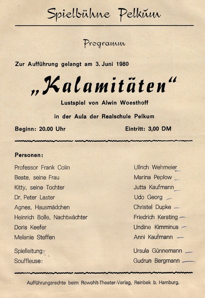 Spieler: Jutta Zülke, Helga Stollmann, Ute Bernholz, Hilde Sohn, Werner Halfar, Erwin Zülke, Dieter Aufenanger, André Stollmann, Nina Strunkowski, Bianca Strunkowski, Claudia Rieger